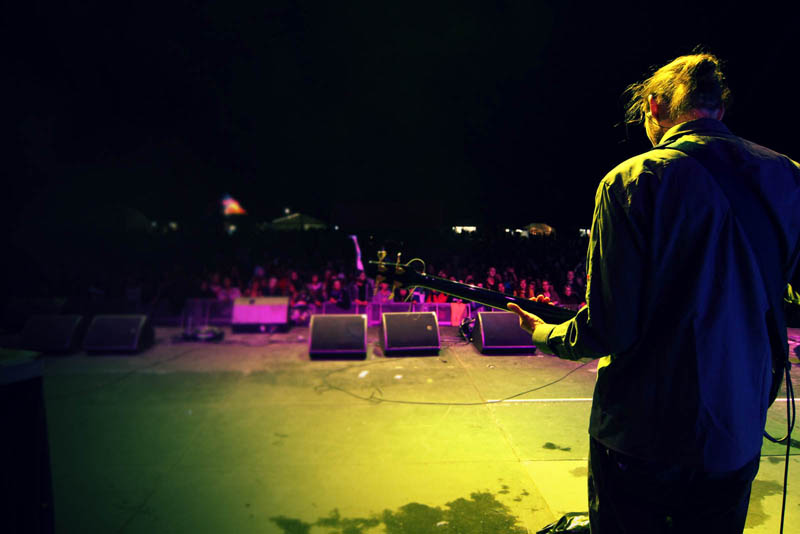 Věci nachystaný, všichni na místech, čas hraní se blíží. Ale stačí, že vítr mocně duje a světla nad našima hlavama vypadaj jak olympionik na hrazdě, co se pokouší o výmyk, veletoč a salto mortále najednou. Do toho chčije úplně všude. Nejsme z mejdla a šampónu, ani měkkoty, ale je jasný, že to nedáme. Vodnicky kaskadérskou verzi konciku prostě nemáme. Zalezlý v šatně vychutnáváme táborový atmo a dřevěnou OSB vůni stanu a čekáme. 90 minut to vypadalo všelijak, jen ne dobře.
