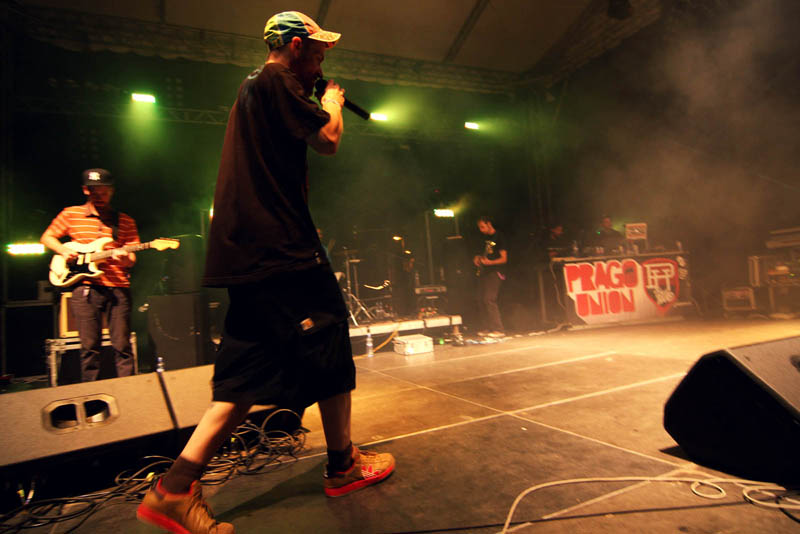 Mezitím padá na Ostravu tma a Prago padaj na stage. Lidí pod pódiem jsou hromady a paří. Lidí na pódiu je celkem hromada a paří. Zvuk je křišťálovej na pódiu i pod ním, nutí pařit. A v téhle vzájemné symbióze ta hodinka uteče ani nemrkneš. Nebýt vedle nažhavení Tata Bojs, čekající na náš závěr, mohli jsme ještě přidat, ale i tak to bylo famózní. Ostravo, dík jak sviňa. Byla to jízda jak pyča.
