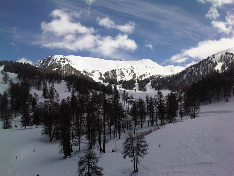 O 3 hodiny později jdem s Marem prohrotit místní sjezdovky. Když se resort jmenuje Risoul Vars, je jasný, že to je var. Možná ještě částečně halucinuju z tý baječný výpravy sem, ale mám pocit, že líp jsem si ještě v životě nezajezdil. Stačej dvě hoďky a nejsem schopen zout botu ani chodit. To mám asi za tu nohavici.