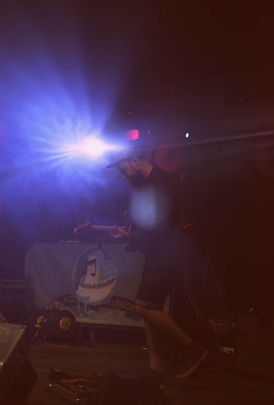 „OK, kapela dá instrumentální set a Kato s Marem zahrajou MC/DJ koncik na after party v klubu.“ Skvělý. Se všema výčitkama tohoto světa a jeho tíhou za hlavou provinile boříme lačná hrdla do nejlepší večeře na světě. A jdem na to. DJ Friky uzavřel svůj set nějakým narvaným dubstepem, ideální antré. Jaký to bylo? Skvělý. Scenérie famózní. Stojí tam plný náměstí lidí. Před nima stojí parádní Red Bull Tour Bus. Na něm stojí nastoupená kapela Champion Sound a DJ Maro. Jen ten, na kterém to celým stojí, ten tam jaksi nestojí. „Kata to hrozně mrzí, moc rád by tu byl s váma, ale nebojte se, nepřijdete o něj, dorazí na after party a tam s Marem zahrajou MC/Dj koncert Prago Union.“ Začít trapasem je prostě príma. Dohrát pecku, slyšet ticho, který se neláme, ani nekončí, jen zní. Boží. Ale postupně se crowd přeci jen chytá a rychlošípáckou partu v tom nenechá.