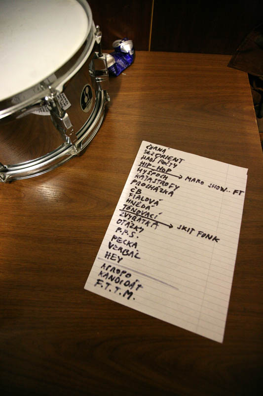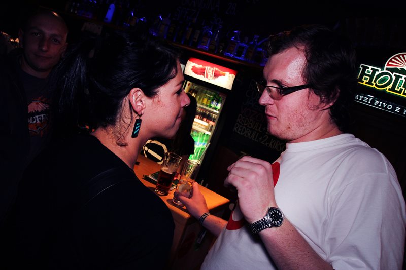 Důvodů očekávat něco jinýho, než triumf se i v návalu skromnosti mnoho napočítat nedá. Dorážíme na pozici, obdivujeme krásný renovovaný BáWo šéfa baru a můžeme tahat na plac. Klub útulnej, ani velkej, ani malej, zkrátka tak akorát na parádní koncik. Solidní světla, přítomnej technik, velmi vstřícná produkce, kurva štípnete mě někdo do artroskopickýho kolena nebo jak to bude?